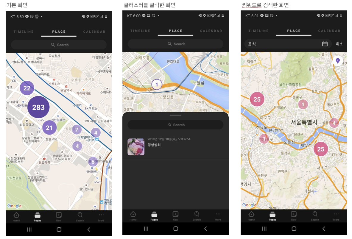 Place 메뉴는 구글 맵에 작성한 메모들을 작성위치 기반으로 보여주는 메뉴이다.