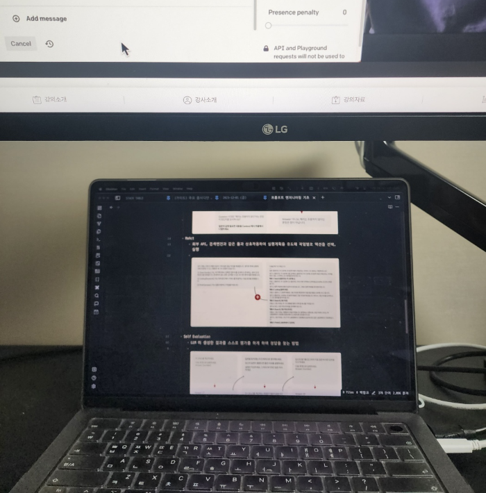 더 나은 답변을 얻기 위해서는 프롬프트 작성 능력이 중요하다는 것을 깨달았습니다. 이를 위해 프롬프트 작성에 관한 커뮤니티에 가입해 활동하면서 많은 노력을 기울였습니다. 그러나 내가 원하는 서비스를 만들기 위해 필요한 프롬프트 엔지니어링에 한계를 느꼈습니다. 특히 복잡한 프롬프트나 특정 컨텍스트를 필요로 할 때 원하는 결과를 얻기 어려워 서비스 개발을 거의 포기하려던 차에, Facebook 광고를 통해 '프롬프트 엔지니어링, LLM(ChatGPT) 기반의 AI 서비스 개발' 강의를 접하게 되었습니다.